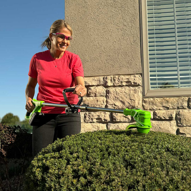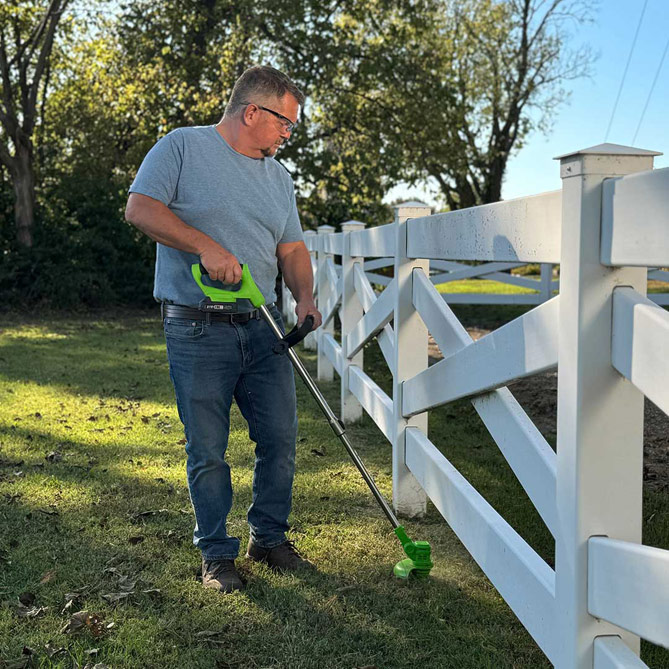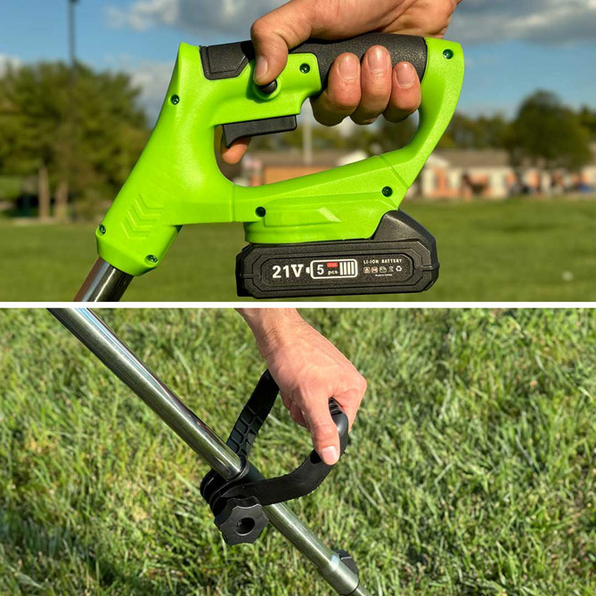 Po zdjęciu kółek zamienia się w potężną ręczną kosiarkę, która idealnie sprawdzi sie do przycinania trawy i chwastów wokół słupków, drzew i delikatnych kwiatów. Po regulacji głowicy zamienia się w potężną kosiarkę do krawędzi. Uzyskasz profesjonalne, czyste cięcia, z eleganckim wykończeniem, które pokochasz.
